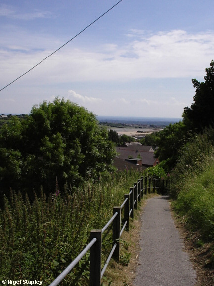 The road down to the small village of Lodge (and on to Wrexham) can now be seen from this point for the first time ever, as the road simply didn't exist before the steelworks bank was thrown up. Even ninety years on, however, it's still known as The New Road.
