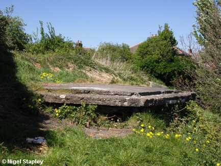 This nondescript concrete platform marks the site of an air-raid observation post from World War II, standing as it does at a point with commanding views over a wide area.