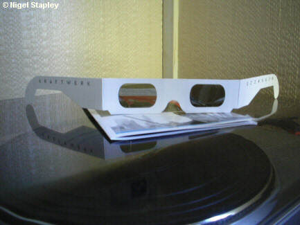 As were entered the venue, we were given our programmes (which were used primarily as fans, cooling, for the use of) and a set of 3D specs. "Put them on at 9:30!", we were told. The evening having started late, this meant about 9:50 (although Wendy put hers on at 9:30 anyway, just in case we were missing something). This was the part I was most concerned about: due to an uncorrected childhood squint, I have poor binocular vision and 3D has never worked for me before. I also have glasses with very thick lenses, so there was a certain amount of prestidigitation involved in getting the 3D bins on over them.