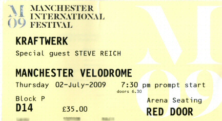Last night, I hied me the sixty-odd miles to the Manchester Velodrome for a unique double-bill. For not only were my beloved Kraftwerk playing one of only two UK gigs they're scheduled to do this year, but the 'support act' - if they can be given what is usually a term denoting inferiority or insignificance - was New York's Bang On A Can All-Stars giving a world première performance of 2x5 by the legendary Steve Reich.